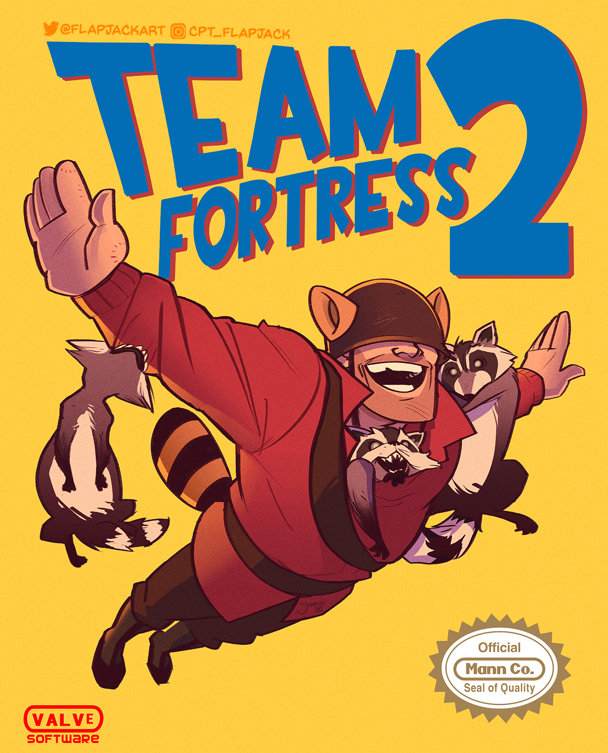 here, a picture a possum eating an apple, and one of the Team Fortress 2 soldier in the pose of the Raccoon Suit Mario